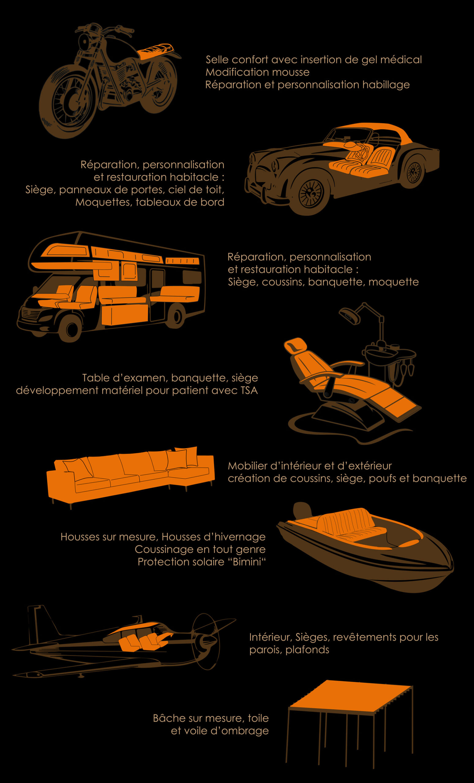 Fabrication réparation de tauds, coussin, bain de soleil, sellerie bateau intérieur et extérieur, bâche de protection d’hivernage.